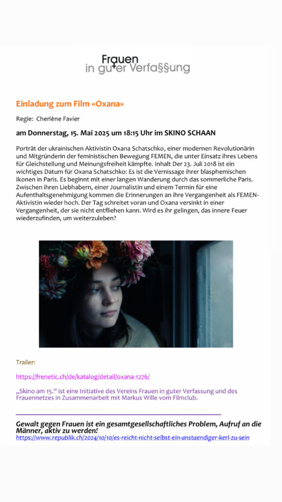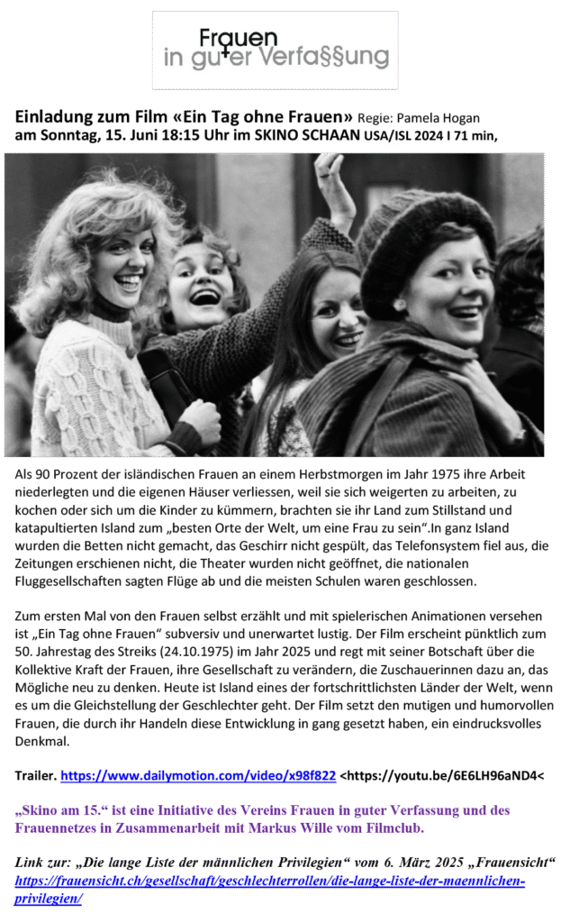 SKINO AM 15. ist eine Initiative des Vereins Frauen in guter Verfassung und des Frauennetzes