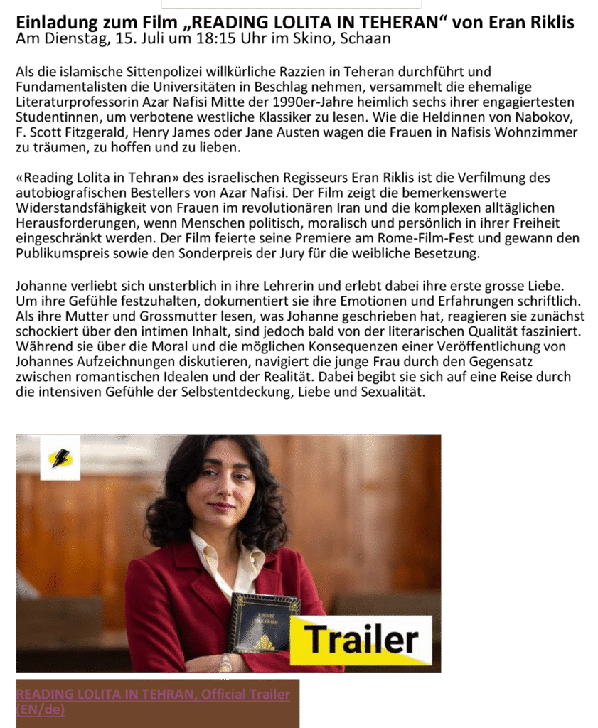 Einladung zum Film am Montag, 15. Juli 2024 um 18.15 Uhr im Skino, Schaan, Saal 1